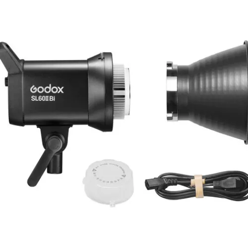 Even in its compact and portable form factor, the SL60IIBI is capable of providing illumination at up to 25,100 lux when using the included reflector. Local controls alter the light’s parameters via the built-in LCD display, tactile buttons, and encoders, or you can operate the light from a distance via a Bluetooth connection and the Godox light control app. When looking to add a creative dynamic to your shoot, the SL60IIBI has you covered with eleven special effects to simulate lightning and other natural phenomena as well as motivate set design choices, such as faulty television screens. The face of the light sports a convenient universal Bowens mount for integrating an extremely wide range of accessories from any manufacturer. The fixture is ready for worldwide use thanks to its 100-240V power supply. Included with the lights are two light stands, two softboxes, and a carrying case.