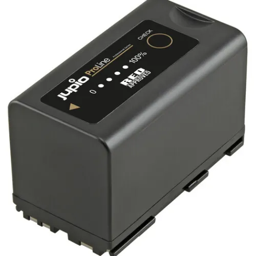The Jupio ProLine BP-955 6700mAh Battery is the perfect choice for powering your KOMODO camera. It’s fitted with a chip that supports all the functions of the KOMODO, and is officially approved by RED. On the back of the battery, you’ll find a battery-level gauge with a check button, so you can quickly check how much runtime you have left.
