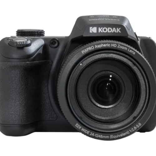 The Kodak AZ528 Astro Zoom Camera Collection is a versatile, compact camera that offers impressive zoom range and flexible imaging capabilities. It features a 16MP 1/2.3″ BSI CMOS sensor, allowing for a quick 6-fps shooting rate and Full HD 1080p video recording at 30 fps with a sensitivity range from ISO 100-3200. The BSI design of the sensor helps to maintain low noise and high clarity for truer colours and accurate rendering in a variety of lighting conditions. The camera also has an impressive 52x optical zoom lens, covering a 24-1248mm equivalent focal length range, and optical image stabilisation to minimise the appearance of camera shake for sharper handheld shooting. You can also compose and review imagery on the rear 7.62cm 460k-dot LCD monitor, and use the built-in Wi-Fi for wireless transferring of imagery and remote camera control from a linked smartphone or tablet.