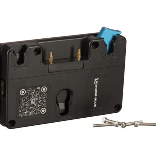 Power your Blackmagic URSA Mini with a Gold mount battery using this Raven Black Kondor Blue Gold Mount Battery Plate. The battery plate accommodates one Gold mount battery and connects to the camera via a proprietary output and four built-in 1/4″-20 screws. Additionally, three D-tap outputs along the perimeter of the plate provide extra power for accessories such as fill lights or wireless transmitters.