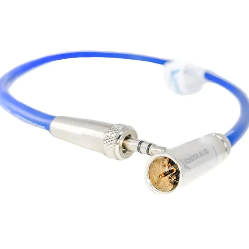 The blue Mini-XLR Male to Locking 3.5mm Stereo Cable from Kondor Blue is a professional-quality audio cable designed to connect a lavalier microphone or wireless unit to the audio input of a Blackmagic Pocket Cinema Camera 6K, Pocket Cinema Camera 4K, or the Canon C70.