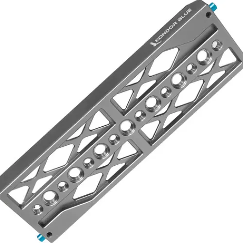 Use this space grey, 8″ ARRI Standard Dovetail Plate from Kondor Blue to balance your camera rig on compatible dovetail mounts with ease. Designed to accommodate both front- and back-heavy equipment configurations, the plate adjusts along its 8″ length for optimal balance. Dual safety release buttons on either end prevent your gear from sliding off, while multiple 1/4″-20 and 3/8″-16 threads along the plate provide additional security.