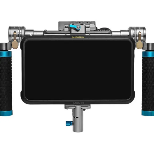 This space grey Director’s Monitor Core Bracket from Kondor Blue is a lightweight and compact bracket that mounts to either the top or bottom of your monitor via a NATO connector, which provides a quick release function to keep your setup easy and smooth, as well as multiple options for adding accessories, such as a V-mount battery plate and more. A dual 15mm rod clamp ensures your monitor isn’t sagging when mounted on the 15mm rod of the separately available Director’s Monitor Indie or Pro kits.