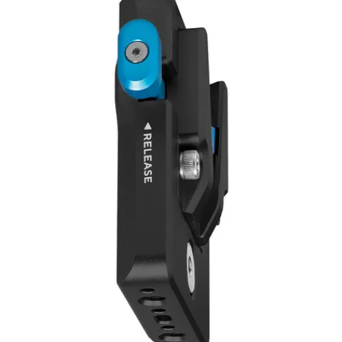 The raven black Mini V-Mount Battery Plate from Kondor Blue is a robust yet lightweight solution designed to support V-mount batteries. Featuring multiple mounting configurations with integrated 1/4″-20 and 3/8″-16 threaded holes, this plate offers versatility in setup. It also includes removable and storable ARRI pins for secure anti-twist mounting solutions. Crafted from aerospace-grade aluminium and stainless steel, this 0.099kg plate ensures durability and reliability. Plus, it comes with a magnetically attached Allen key for convenient adjustments.