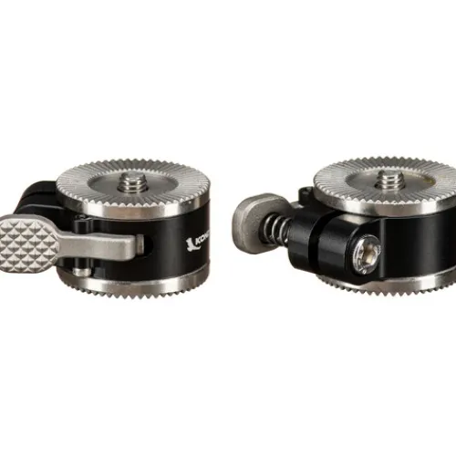Introducing the Raven Black Quick-Adjust Rosette Module Set from Kondor Blue, featuring both left and right-side modules for versatile rosette mounting support adjustment. Crafted from durable aluminium, these compact modules mount seamlessly onto your rig’s rosette with the inset M6 screw, ensuring a clean rosette face for attaching your ARRI rosette-mounted handgrip. With spring-loaded thumb levers, these modules enable quick orientation adjustments of your handle without the need to loosen it from your support. This allows for fast and secure angle adjustments without interrupting your shooting process, streamlining your workflow for maximum efficiency.