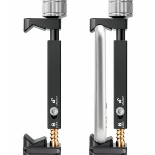 The clamp can extend from 5.6cm to 9cm, accommodating a variety of smartphone sizes. Whether you have a compact device or a larger phone, the PC-90II adjusts effortlessly to hold it securely.