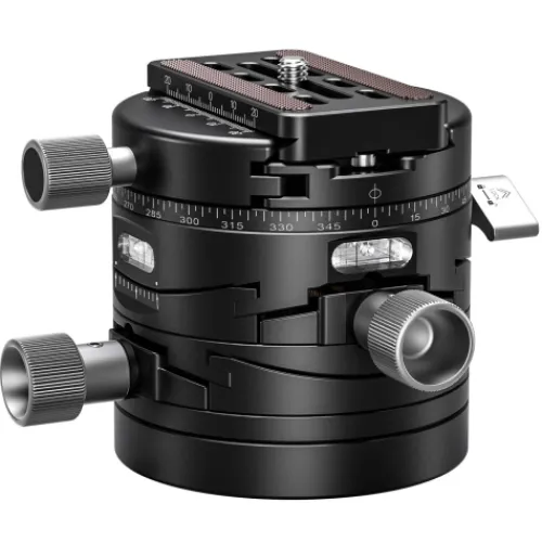With the dual-axis panorama adjustment, users can take full advantage of ±15° adjustments for fine-tuning the horizontal, tilt, and vertical axes. The panning base provides 360° rotation for full panoramic shots, while the finely calibrated gears ensure that even the smallest adjustments are smooth and precise.