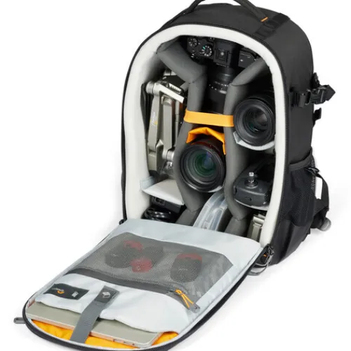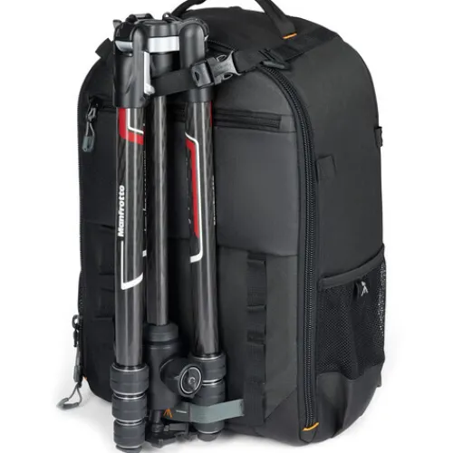 The black Adventura BP 300 III Backpack from Lowepro is a classic photography pack that is perfect for transporting, organising, and protecting your entire photography kit. The Adventura BP 300 has ample room to organise a camera body with a full set of lenses. It offers convenient front access and has a 13” laptop pocket. The backpack can hold a full-frame mirrorless camera, including a Sony Alpha 7-9 series with a lens attached, as well as four additional lenses or a foldable drone such as the DJI Mavic Pro 2. There is also a pocket for a 13″ laptop and space for small accessories. The large side pocket can accommodate a compact tripod, including a GorillaPod 5K or a Befree Advanced. The front of the pack has a tripod attachment that can hold a larger tripod.