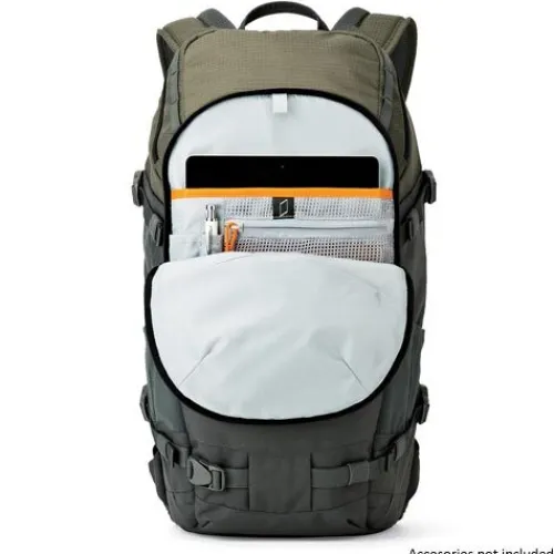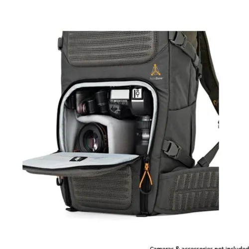 The Lowepro’s ActivZone suspension system provides comfort from sun up to sun down. A breathable, moisture-wicking back panel helps keep you cool and offers targeted support for your lower back when the bag’s fully loaded. The ergonomic shoulder harness system is well-padded and adjustable for comfort and better weight distribution.