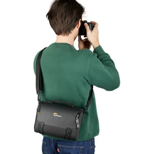 Lowepro’s new bags are made from dope-dyed black fabrics and recycled linings/webbings to reduce water use and CO2 emissions.