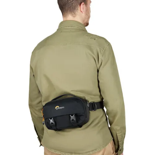 The Lowepro Trekker Lite HP 100 Hip Pack is the perfect solution for carrying your small crop-sensor mirrorless camera, such as the Sony Alpha 6000 series, along with additional accessories. The pack can fit your camera and two small lenses, a compact camera, an action cam, your smartphone, snacks, sunglasses, and even a compact tripod like the GorillaPod 3K. The UltraCinch compression system keeps your gear stable while moving, and the front compartment features an organizer pocket and key leash. The adjustable and removable shoulder strap has a side-release buckle for easy clipping and unclipping while wearing the pack. With the perfect balance of style and functionality, this hip pack is the ultimate accessory for all your photography needs.
