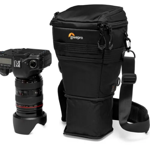 Its top-loading design, wraparound zipper, and smooth interior lining allows you to get your gear in and out quickly. The bottom of the bag can expand, so you can carry a long mounted 24-70mm f/2.8 lens without compromising protection. A separate shallow accessory pocket on the lid gives you an easy place to keep batteries, memory cards, and cables.