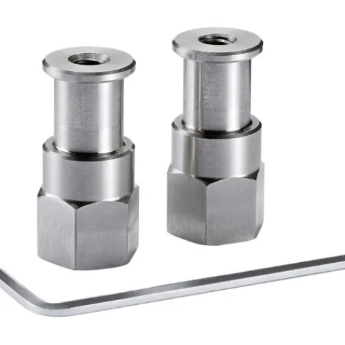 The set of 2 5/8″ Spigots with 1/4″ Thread for Friction Arms from Manfrotto includes two stainless steel studs with female 1/4″-20 threads. Designed for compatibility with the 244micro, 244mini, and 244micro-AR arms, the spigots can be easily attached or removed using the included hex key.