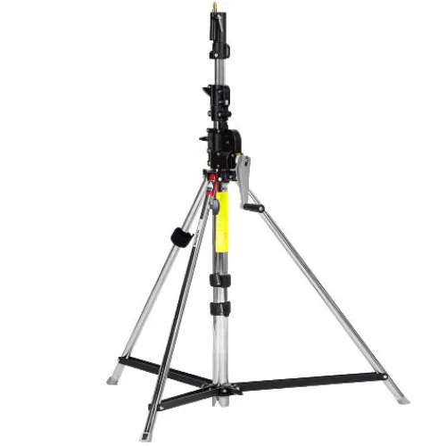 The Manfrotto 087NWLB Low Base 3-Section Wind Up Stand is a robust steel support engineered for professionals requiring reliable elevation and mobility in studio or on-location settings. Featuring a geared centrepost with two risers, it extends smoothly from a minimum height of 144 cm to a maximum of 276 cm, accommodating a substantial payload of up to 30 kg. Its low-profile base, complemented by a single levelling leg, ensures stability on uneven terrain, while braked wheels facilitate secure repositioning. The stand’s top attachment includes a 1 1/8″ (28 mm) socket and a 5/8″ (16 mm) stud, offering compatibility with a range of lighting equipment. Weighing 16 kg and folding down to 134 cm, the 087NWLB balances durability with portability, making it an indispensable tool for demanding photographic and video productions.