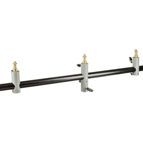 The Manfrotto 154 Triple Microphone Holder accommodates up to three microphones of any type. The entire bar mounts onto a stand or bracket with 16 mm pin and measures 65cm in length.