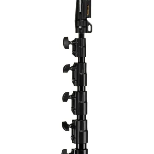 The Manfrotto 269HDBU Super High Aluminium Stand with Levelling Leg reaches an impressive height of 24′, making it one of the tallest stands available, and can support loads up to 9.98 kg. It features an independently adjustable leg for stable positioning on uneven ground or stairs, making it a reliable choice for demanding lighting setups.