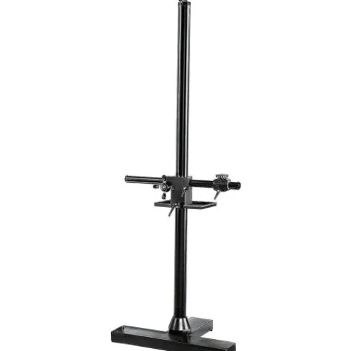 The Manfrotto Super Salon 280 Camera Stand provides sturdy support for cameras of all sizes, offering versatile movement options. It features retractable wheels for smooth and easy positioning around the studio.