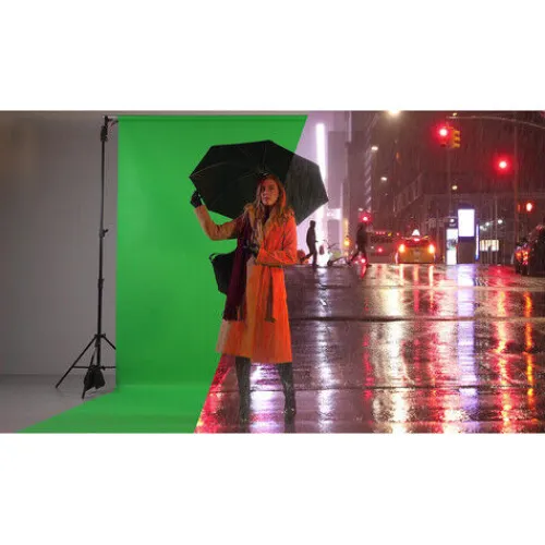 The Manfrotto 9×19.7′ Chroma-Key Vinyl Background in green is ideal for both still photography and video production, offering ample coverage for full-body shots and floor-to-backdrop setups. Made from durable vinyl with a matte finish, it provides a reusable, crease-free surface that’s easy to maintain and can be wiped clean. A separately available support system is required for mounting.