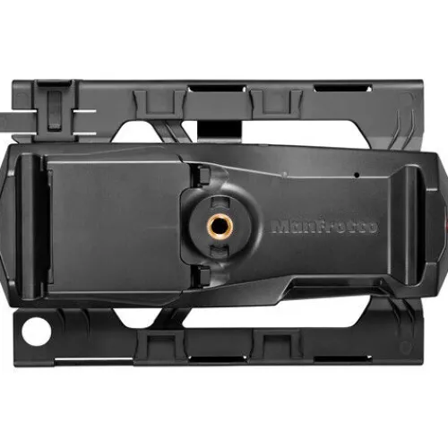 A 3/8″-16 female thread allows the holder to attach to a variety of supports, and two notches to match up with Manfrotto’s anti-twist mounts.