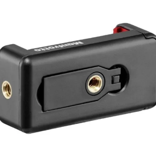 The Universal Manfrotto Smartphone Clamp is designed to securely attach your smartphone to a tripod or camera mount when shooting stills and videos. With two 1/4″ female threads located at the base and on the back of the Clamp, you can mount your phone onto many supports in multiple positions. It also features two silicone rubber pads for a secure grip. Plus, the Universal Clamp can also work as a stable table base for your smartphone, thanks to the self-standing bracket on its back.