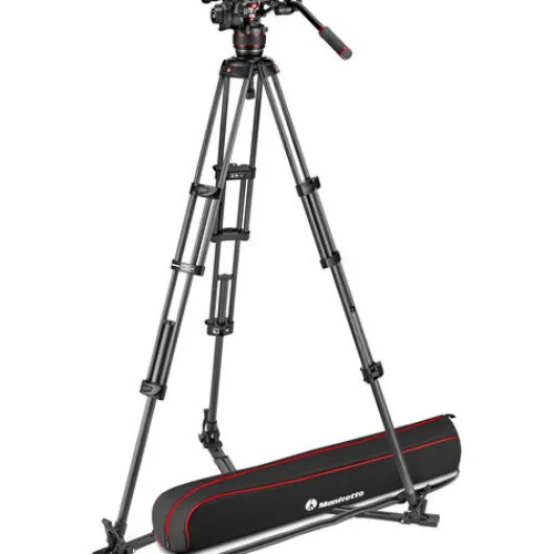 Manfrotto MVK608TWINGC 608 Nitrotech Fluid Video Head and Carbon Fiber Twin Leg Tripod with Ground Spreader