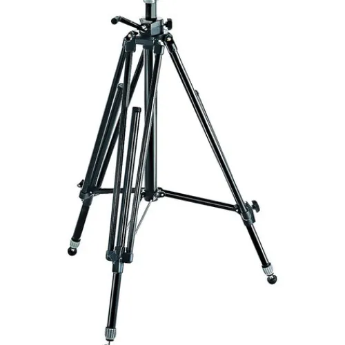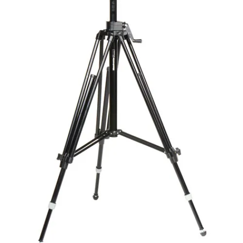 The Manfrotto 028B Triman Camera Tripod is a robust and reliable tripod with a geared centre column designed for industrial and studio use. It features a tandem leg design, an integrated spirit level and rubber feet with retractable spikes. The geared centre column has a non-rollback feature and a 3/8″-16 threaded mount at the bottom for low-angle shots. It’s strong enough for even the most demanding medium format applications and is compatible with the 181B dolly. A mid-level spreader and a carrying strap are included with the tripod.