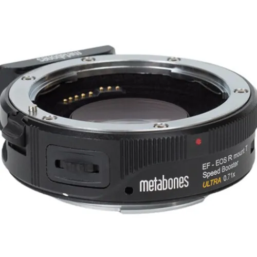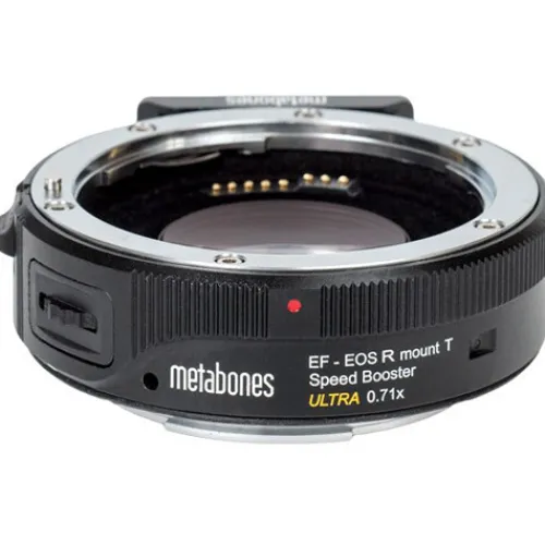 This Metabones T Speed Booster Ultra 0.71x Adapter lets you use a full-frame Canon EF-mount lens on a Canon RF-mount camera. It increases the camera’s aperture range by one stop, up to a maximum of f/0.9, and its optics help to maximise the connected lens’s angle of view when shooting UHD 4K video.