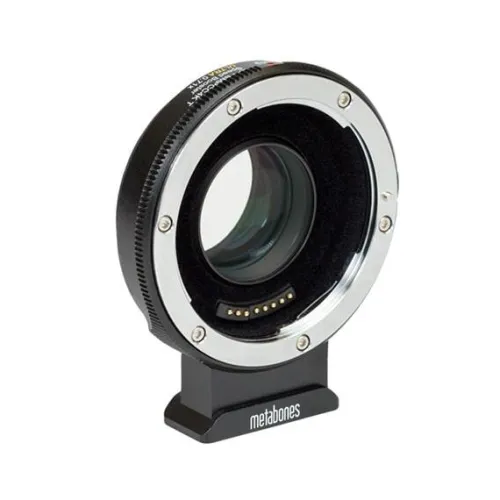 The Metabones T Speed Booster lens adapter supports communication between your camera and attached lense. Thanks to this interface, settings like aperture can be changed from the camera rather than having to be manually controlled on the lens. This also allows the camera to record EXIF data in the meta data of your image file.