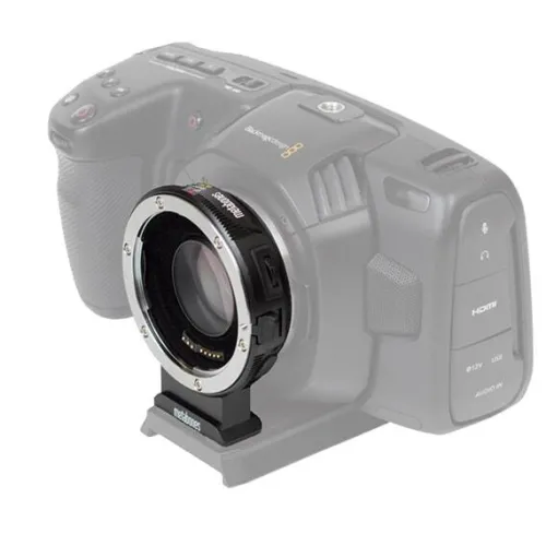 With the Metabones T Speed Booster Ultra 0.71x Adapter, Canon EF lenses can be attached to the BMPCC4K camera with its Micro 4/3 size sensor and mount. It reduces the crop factor from 2.0x to 1.43x to capture up to a 0.71x wider field of view.