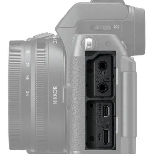A headphone jack has been added, doubling as a terminal for Nikon’s newly released and optional MC-DC3 Remote Release Cord, and the USB-C terminal provides both camera charging and USB power delivery. The camera retains the microphone and HDMI ports of its predecessor.