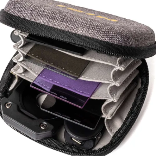 The NiSi P1 Prosories Case is designed to store and protect the P1 Mobile Phone Filter System. It features a hard exterior shell and a soft microfiber interior and is able to hold the P1 Holder with a clip and up to four filters. At only 0.034 kg, it’s lightweight and small enough to fit in your pocket and take with you wherever you go.