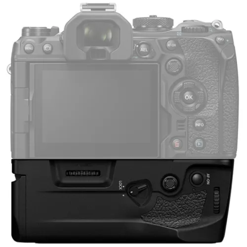 The OM SYSTEM HLD-10 Power Battery Holder is created particularly for the OM SYSTEM OM-1 and has the identical controls in both the vertical and horizontal positions. When used in conjunction with the OM SYSTEM OM-1, it has an IP53 dustproof and splashproof rating. When two BLX-1 Lithium-Ion Rechargeable Batteries in the camera and the HLD-10 are used simultaneously, about 1,000 photos (based on CIPA testing) can be captured. When connected to the OM SYSTEM OM-1, the BLX-1 Lithium-Ion Rechargeable Battery can be charged within the HLD-10.