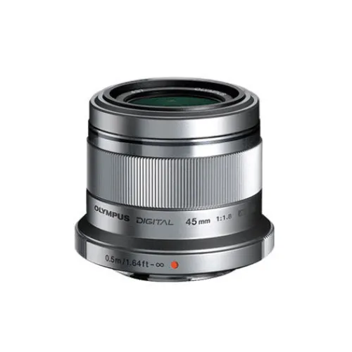 The Olympus M.Zuiko 45 mm f/1.8 Silver is a high-performance portrait lens with a bright f/1.8 aperture. MSC drive technology provides high-speed and silent autofocus, making it great for stills and movie shooting. When the aperture is fully open, you get a shallow depth-of-field, resulting in sharp focus on the subject and soft, beautiful defocusing of the background and out-of-focus areas. Plus, its beautiful metallic silver finish and light weight make it the perfect complement to your PEN micro four thirds compact system camera body.