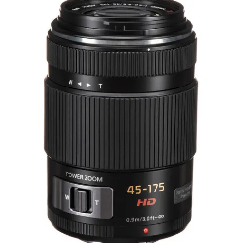 The new Panasonic Lumix G X Vario PZ 45-175 mm f/4-5.6 ASPH. / POWER O.I.S. lens with HD video support is designed for use with G Series Micro Four Thirds compact system cameras. It offers an exceptionally compact design with a versatile zoom range of 45-175 mm (35 mm camera equivalent: 90-350 mm). High contrast and resolution is guaranteed for images taken at the wide-end, making it perfect for taking portraits. Plus, distant subjects such as sports and wildlife can be captured clearly even at the tele-end. The zoom lever allows for smooth zooming when capturing HD movies, even when shooting moving subjects.