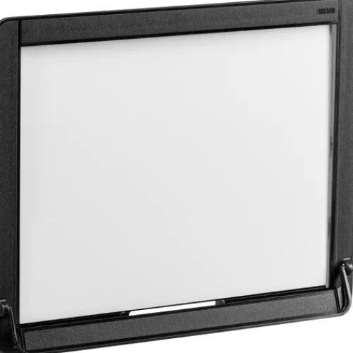 This single-size 8×10″ easel is made from plastic and features an opening for paper slide. Unfortunately, it does not have adjustable borders.