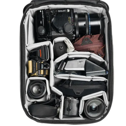 Safeguard and organise your photo, video, and drone gear with the Peak Design Camera Cube V2 X-Large, designed for use on its own or inside larger travel bags. Suitable for anything from small mirrorless kits to full professional setups, it fits securely in most Peak Design bags via included C-Clips, and also integrates with other brands. Customise the interior with FlexFold dividers and shelf inserts for vertical stacking, while the wide main opening and removable padding offer fast, clear access. Crafted with a weatherproof Bluesign-approved 160D nylon canvas shell and Ultra Zips, it includes side zips for backpack access, a floating pocket for small accessories, and loops for attaching Peak Design straps, sold separately.