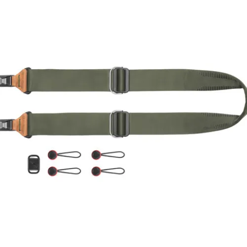 Take your equipment with you in comfort and style with this sage green Slide Camera Strap from Peak Design. It’s well-designed, providing full stability and a versatile connection with an adjustable length of 99 to 144.78 cm. This strong and secure strap can hold up to 90.71 kg of gear, easily supporting even the heaviest pro DSLRs and binoculars.