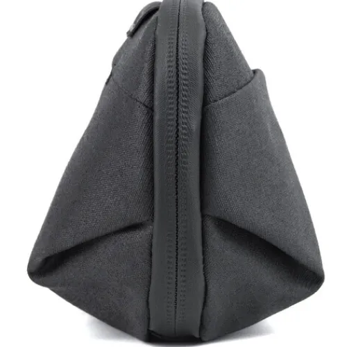 The Peak Design Wash Pouch in black is a handy and practical toiletry bag. It can sit upright on the counter or be hung up with its stow able hook, making it easy to access your toiletries. Despite its small size, the pouch can fit a variety of differently sized and shaped toiletries. It has a network of internal TPU-coated nylon mesh pockets, a magnetically-sealed toothbrush pocket, an external razor pocket, and an internal zippered pouch to keep your items organised and clean. All pockets can be easily turned inside out for quick cleaning. This pouch is great for ultralight travelling or short weekend getaways.