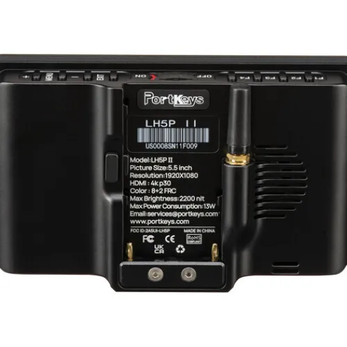 Add pro monitoring and control to select Sony cameras with the Portkeys LH5P II 5.5″ Touchscreen Monitor. This bright 5.5″ on-camera touchscreen display offers 2200 cd/m² brightness and can input and output up to DCI 4K24 or UHD 4K30 video via HDMI. Compatible with Sony FS5, FS7, FX6, and FX9 cameras, this monitor features a built-in Bluetooth module that enables select camera functions and comes with a control cable to connect your device to the monitor.