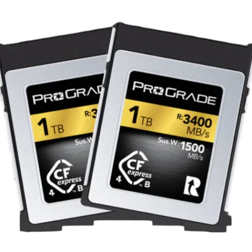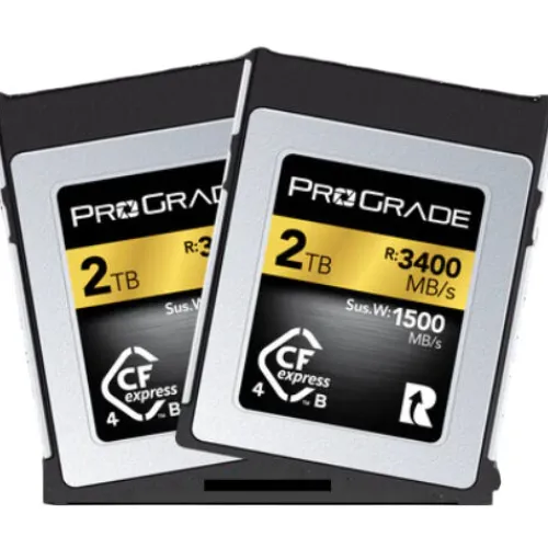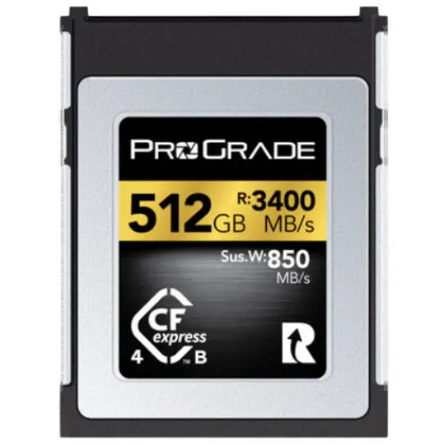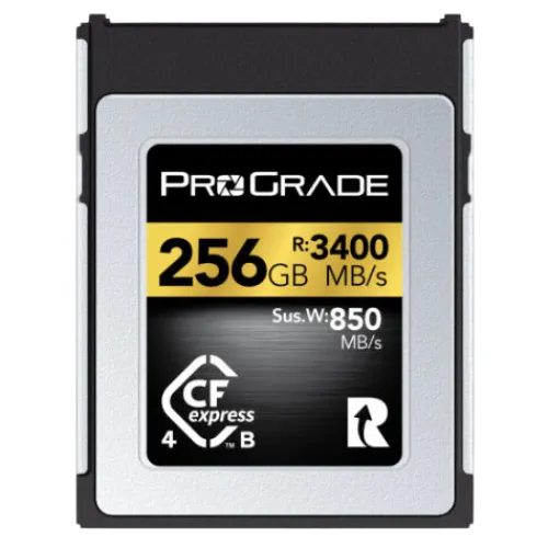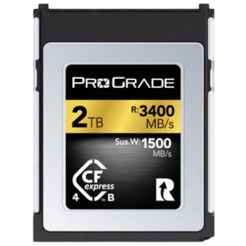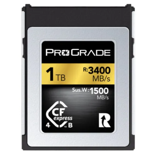 The ProGrade Digital CFexpress Type B 4.0 Gold Memory Card is built for next-generation performance, utilising PCIe Gen 4 technology and an NVMe host controller interface to meet the demands of high-end Mirrorless, DSLR, and high-definition video cameras. Available in 256GB, 512GB, 1TB, and 2TB capacities, it delivers blazing-fast read speeds up to 3400MB/s and sustained write speeds of 850MB/s or 1500MB/s depending on the model-making it perfect for efficiently off-loading RAW files or capturing uninterrupted 4K and 6K cinematic video.
