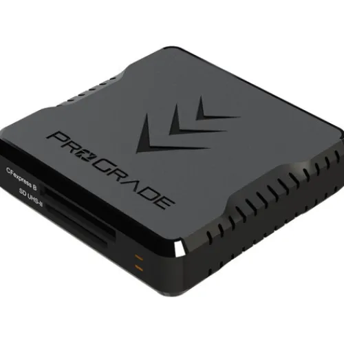 The ProGrade Digital CFexpress Type B & UHS-II SDXC Dual-Slot USB 3.2 Gen 2 Card Reader provides a fast and efficient workflow to match the high transfer speeds of their memory cards. This reader has one CFexpress Type B slot and one UHS-II SDXC slot, and takes advantage of the 10 Gb/s USB 3.2 Gen 2 bus to deliver transfer speeds of up to 1.25 GB/s, or 1250 MB/s, via its USB Type-C interface. The reader comes with a metal plate to secure its magnetic base to your Windows or Mac system, and also includes 46 cm USB Type-C to Type-C and Type-C to Type-A cables.