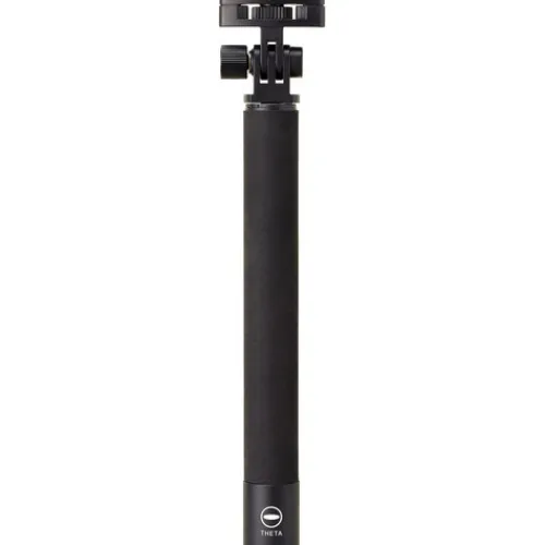 The Ricoh TM-2 THETA Selfie Stick has a small pan head that reduces reflection when used with THETA 360 cameras. It has a 1/4″-20 mounting screw on top to firmly secure the camera via a dial on the pan head. The pan head is connected to a native 3-prong mount at the end of the selfie stick, and can be tilted up and down on the 3-prong mount to get the perfect camera position.