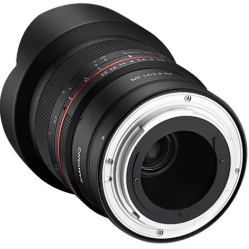 The MF 14mm F2.8 RF utilises advanced optical technology for excellent resolution. It contains: Aspherical, Hybrid-Aspherical, Extra-low Dispersion and High Refractive lens elements to deliver clear and lively images to the sensor. Flare and ghosting effects are well-controlled by Samyang’s ultra-multi-coating technology. The MF 14mm F2.8 RF incorporates weather sealing, which provides protection from light rain and snow.