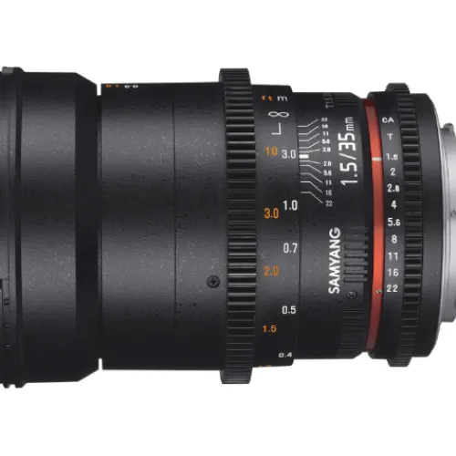 The lens can be used both in photography and cinematography, perfect for amateurs and professionals. The frame of Samyang 35mm T1.5 is compact and solid as it is made of high-strength aluminium alloy so trustworthy images can be captured even under inferior environments. Also, the detachable petal-shaped hood shelters the lens from unnecessary light. Filter size is 77mm.