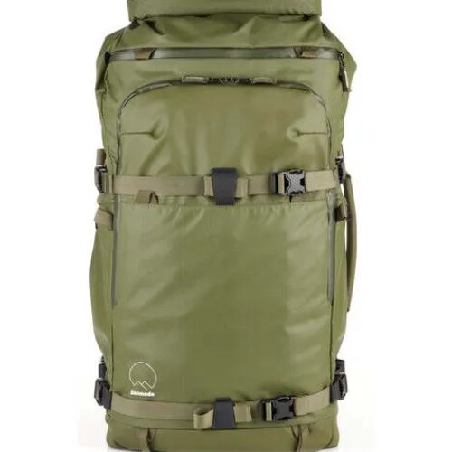 The army green Action X70 HD Backpack from Shimoda Designs is built to accommodate large cine, digital video, and super telephoto camera kits. Its heavy-duty (HD) construction features reinforced stress points, thick nylon webbing, and aluminium hardware. This pack is perfect for cinematographers, wildlife photographers, and action shooters who require a durable and stable solution for their gear.