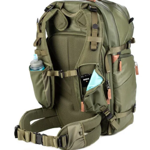 Pockets on both exterior sides of the pack can be used to fit a water bottle, tripod or other outdoor equipment