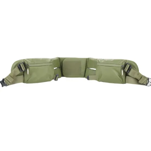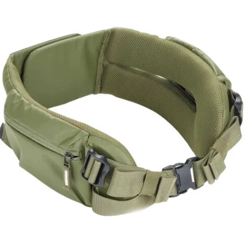 The green HD Waist Belt from Shimoda Designs provides added stability and helps transfer the weight of your backpack from your shoulders to your hips, ensuring comfort and support during long treks with heavy loads. The belt includes two zip-closure storage pockets and around 4″ of adjustable sizing. Constructed with a durable nylon exterior, high-density EVA padding, and air mesh inner padding, it offers improved breathability for enhanced comfort.