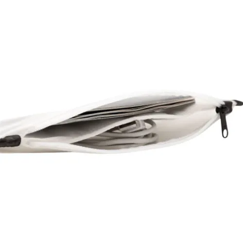 Sleeves are separated by a divider to keep items like face masks clean and separate from other items