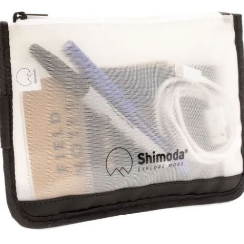 The black Shimoda Designs Travel Pouch is an essential accessory to streamline your commute, keeping your personal care items-such as face masks, earplugs, water purification tablets, and pain relievers-protected from dirt and wear.
