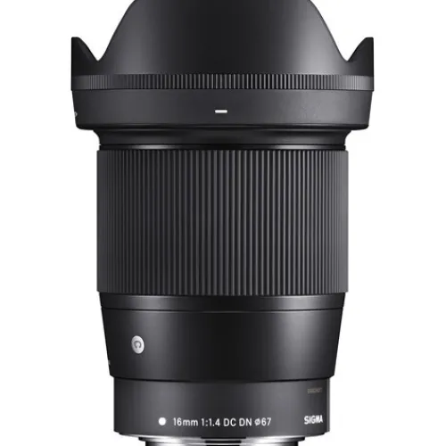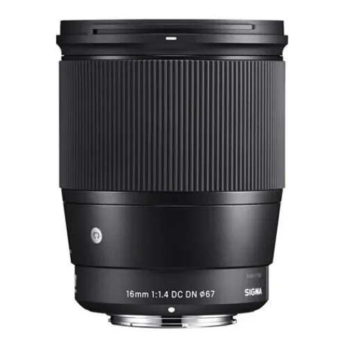 The Sigma 16mm f/1.4 DC DN lens SonyE is a great addition to the Contemporary line-up. This high quality wide angle lens has an equivalent focal length of 24mm for E-mount and 32mm for MFT lenses. With a bright f1.4 aperture, you can take advantage of lowlight performance and depth of field flexibility for creative, selective focus shooting. A nearly silent stepping motor provides smooth and accurate autofocus, perfect for shooting video. The durable construction is also dust and splash-proof, so you can confidently use the lens in challenging conditions. Whether you’re into creative, travel or especially landscape photography, the 16mm F1.4 lens is a reliable wide-angle option for mirrorless camera users.